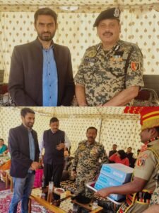 Altaf Bhat marked the occasion by presenting sweets to BSF officers and jawans, expressing gratitude for their service and sacrifice. The event was graced by Brigadier R.N. Babu, DIG BSF, Commanding Officer of the 62 Battalion, SP Anand, and several other senior officers.